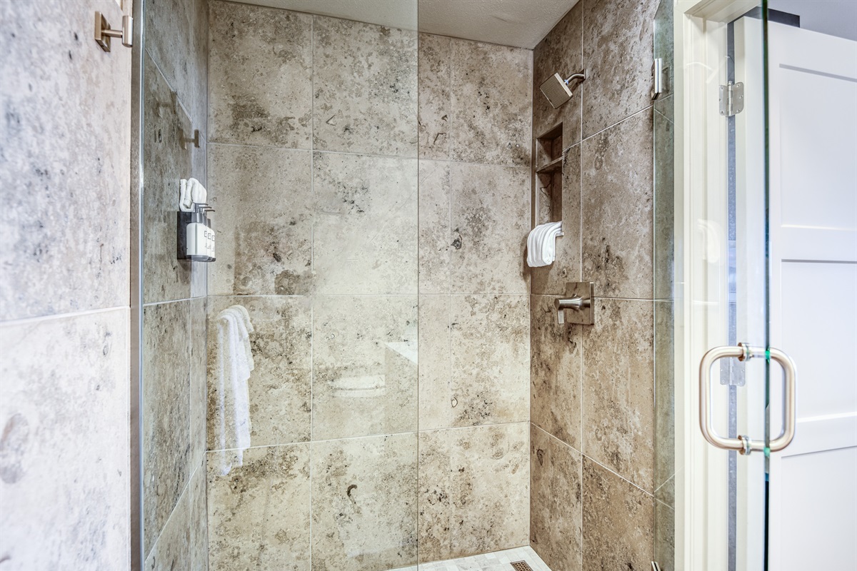 Walk-in shower with contemporary fixtures