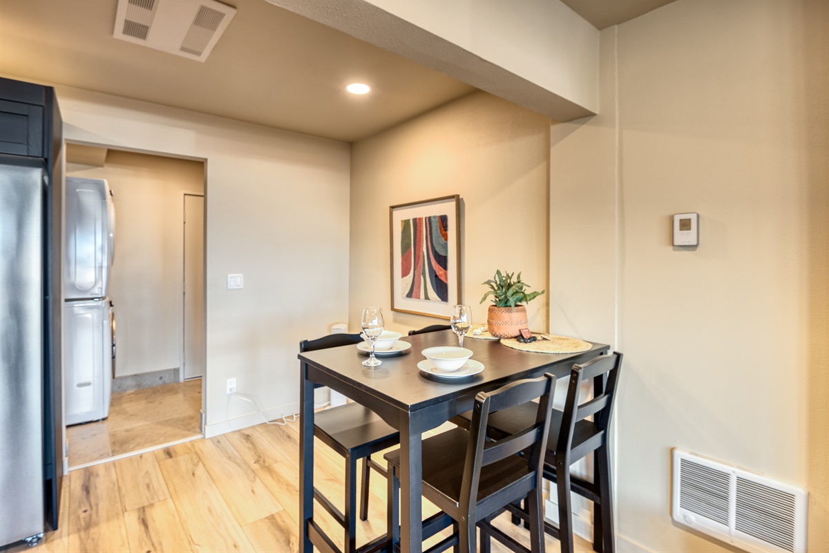 Small dining table that doubles as a workspace, with high-speed WiFi for remote work, planning day trips, or staying connected