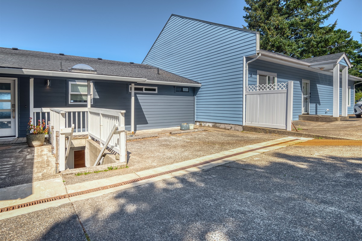 Private parking behind the building – requires going down a full flight of stairs to reach the unit