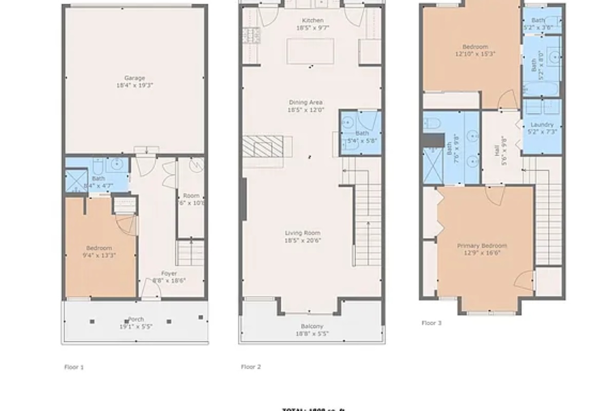 Stairs throughout: The home is three stories with no elevator—not wheelchair accessible
