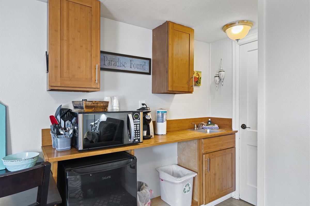 An Efficiency Kitchen with Microwave and Refrigerator.(No cooktop/oven and a mini fridge only)
