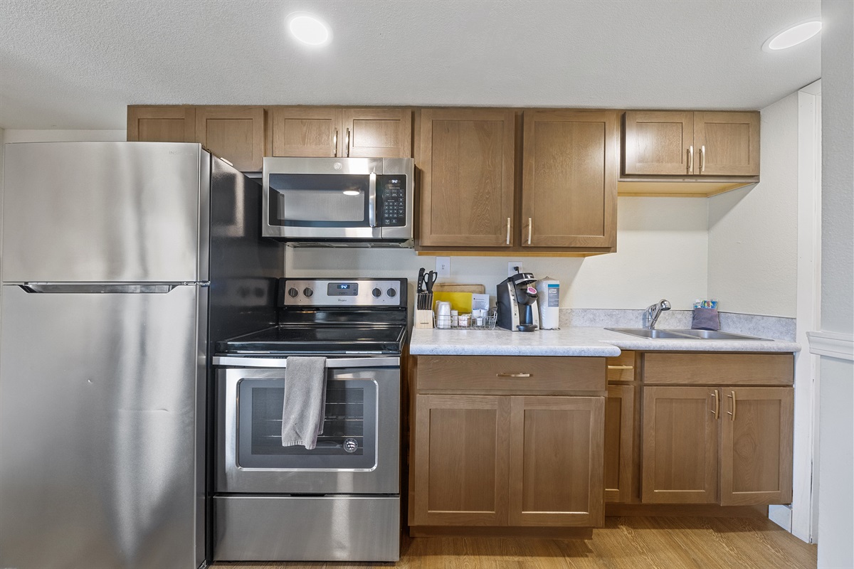 Location, location, location! The room was super clean, awesome location- it's by everything. The owners and property managers were responsive and accommodating. They are continually getting new stuff. We had a brand new fridge (full size), stove, oven, and microwave.