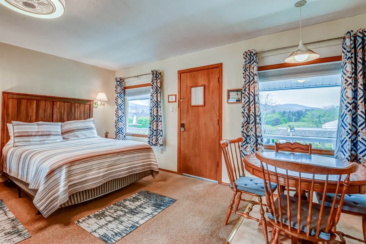 We really enjoyed our stay here with our pup! It was clean and the self-check in made it social-distancing friendly. We could hear the ocean but it was not visible from our room. There is a sandy beach a few minutes away, but no beach access or much of a view. There is a great viewpoint just 30 seconds up the road across from downtown shops and restaurants that made up for it. The sheets were very soft and the extra pillows were nice! We played cards and domino at the table in the little kitchen and it was perfect. We also appreciated the mini fridge for leftovers and beverages. Overall, great stay that was exactly what we needed! No frills and felt comfortable. We never had to leave the room once we got there :)