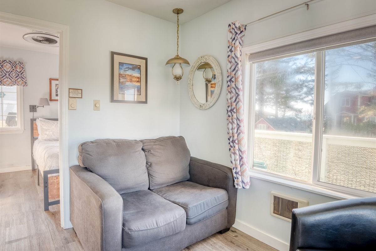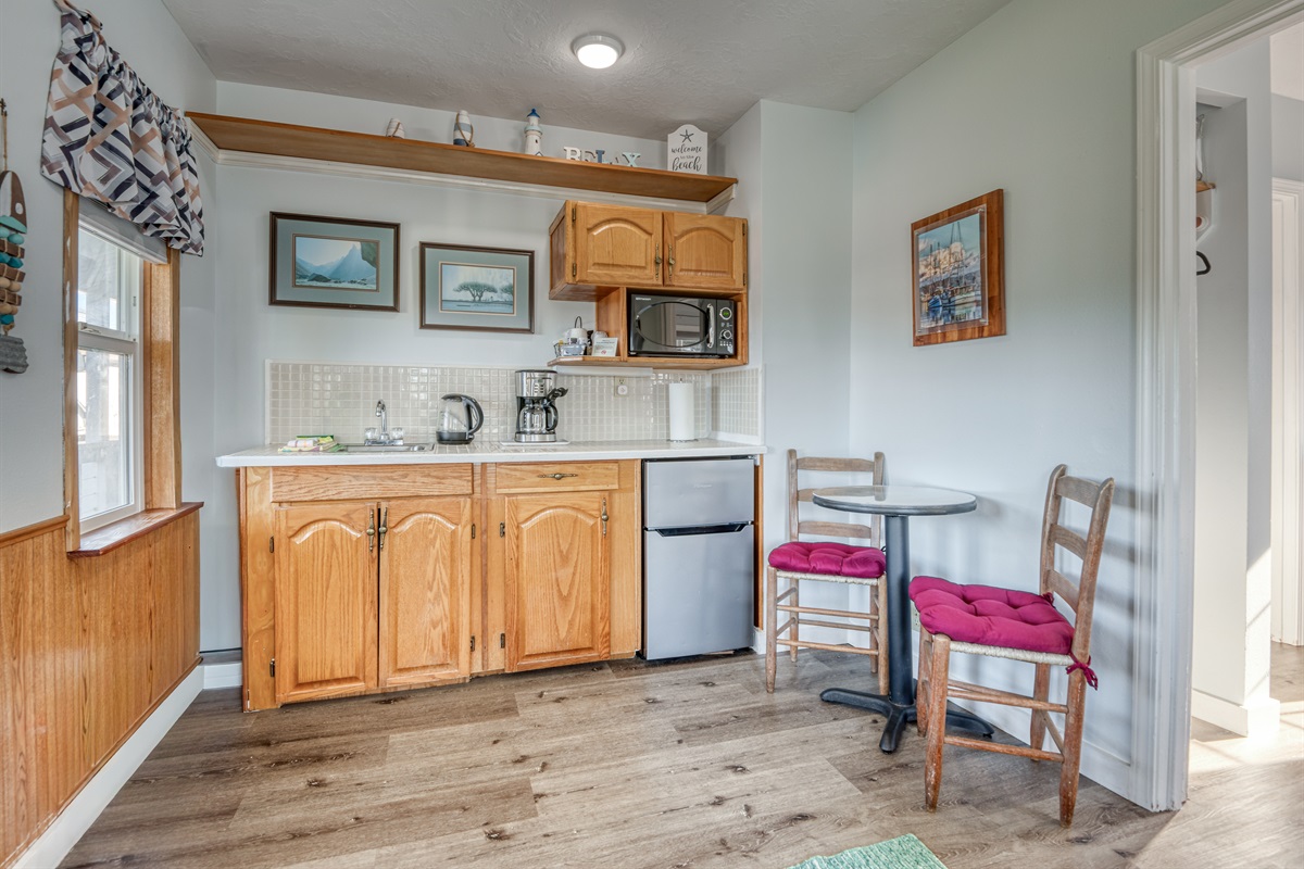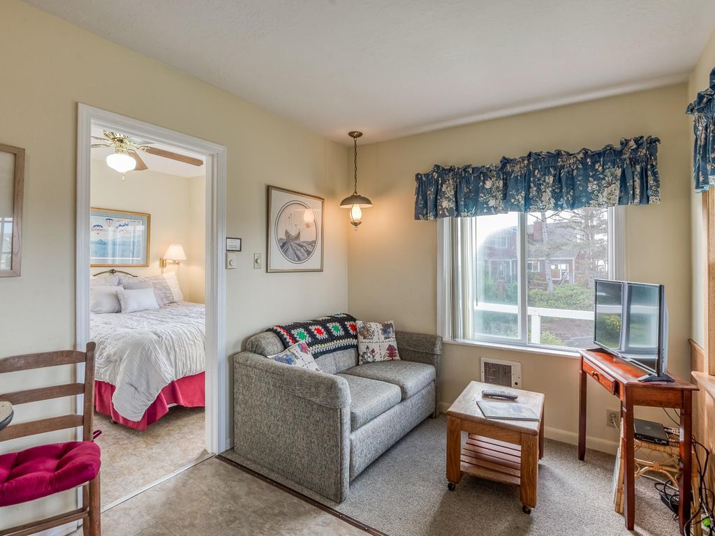 These small, but clean units are close enough to downtown Depoe Bay to walk. We walked to the harbor several times to watch the whales or grab a to-go meal. The furnishings aren't luxurious, but everything we needed was included. The kitchenette was well-stocked with plates, silverware, etc. Just a note: In our unit, there was no door between the living space and the bedroom, which wasn't obvious in the photos. In these days of work/school from home, that was an issue for us because we had assumed one of us could be in an online meeting in the bedroom (with the door closed) while the other was able to watch tv or otherwise make noise in the living area.