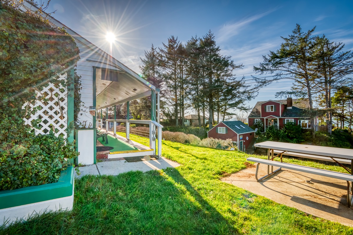 There are several picnic tables and benches throughout the property available for outdoor dining and nice relaxing rest in the cool coastal air!