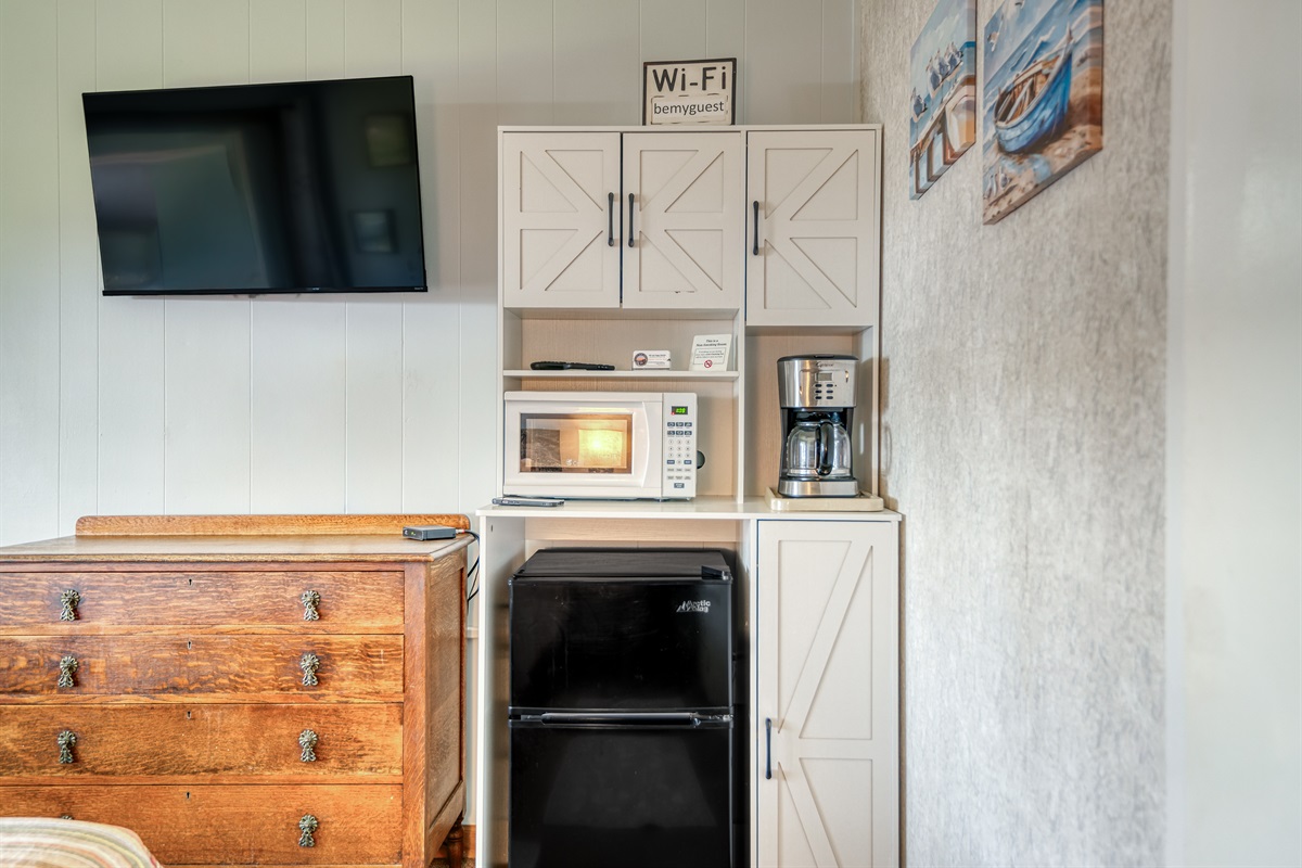 Nice setup for a place to sleep while driving up the coats, a small room but some added convenience items like keurig coffee, razor and shaving cream, popcorn. Can hear the ocean waves if you leave the window open.