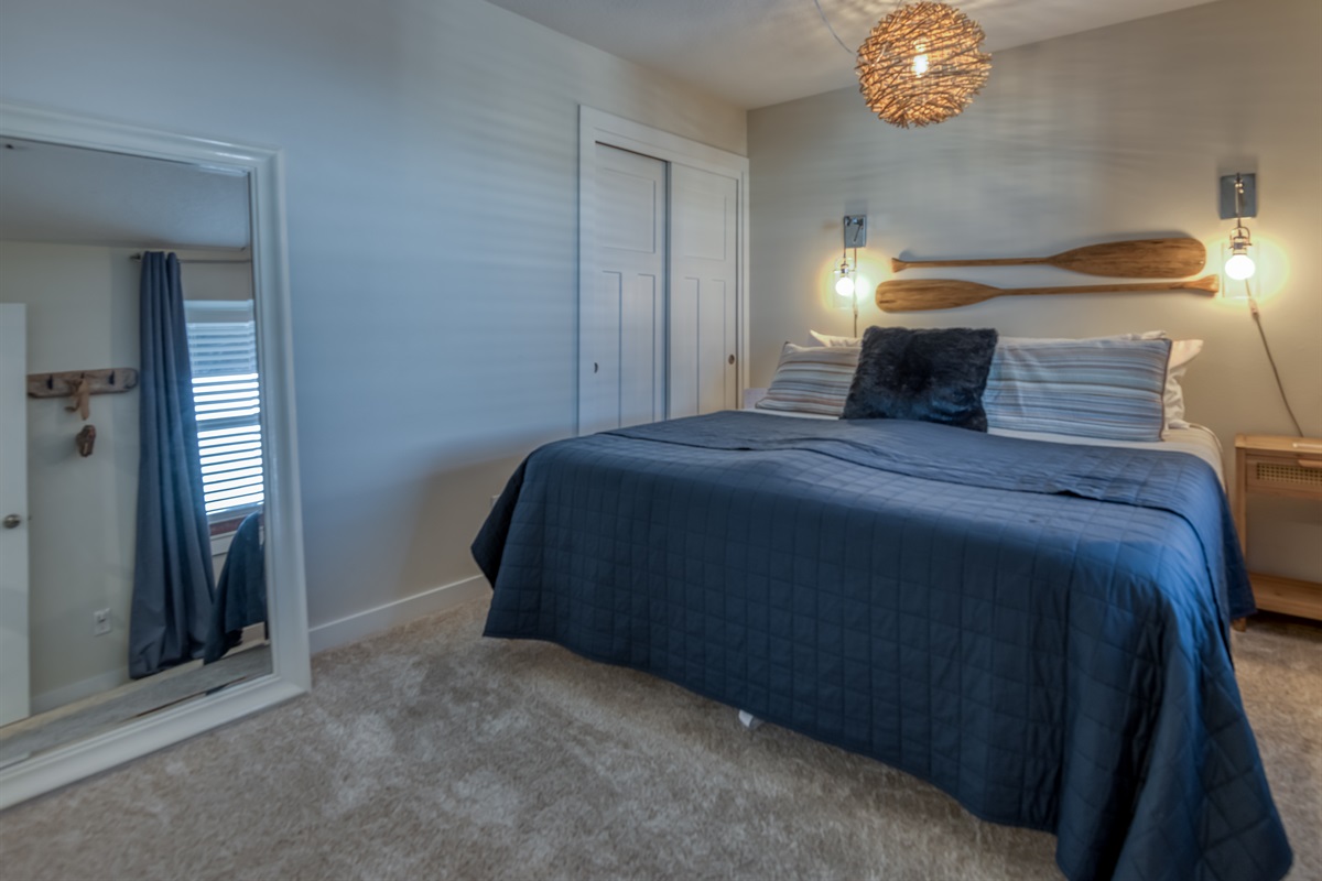 For those who enjoy outdoor living, The Moby House offers multiple levels of decking, including a private balcony on the top floor. The large deck off the main living area is perfect for gatherings, whether you’re grilling dinner on the BBQ or simply enjoying a conversation as the sun sets over the water. If you’re looking to relax in ultimate comfort, the hot tub located on the lower deck is the ideal spot to soak while taking in the surrounding natural splendor. Hot tub use is entirely at your own risk, so guests should enjoy it responsibly.