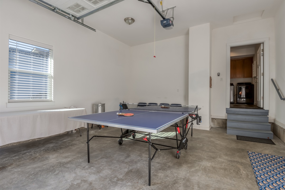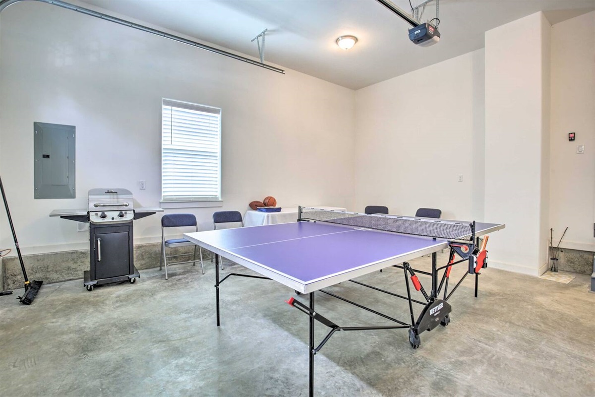 Additional features include air conditioning and heating, ensuring comfort during all seasons. The game room provides a fun escape with a ping pong table and board games, perfect for rainy days or quiet evenings indoors. There’s also a laptop-friendly workspace for those who may need to catch up on emails or work during their stay.