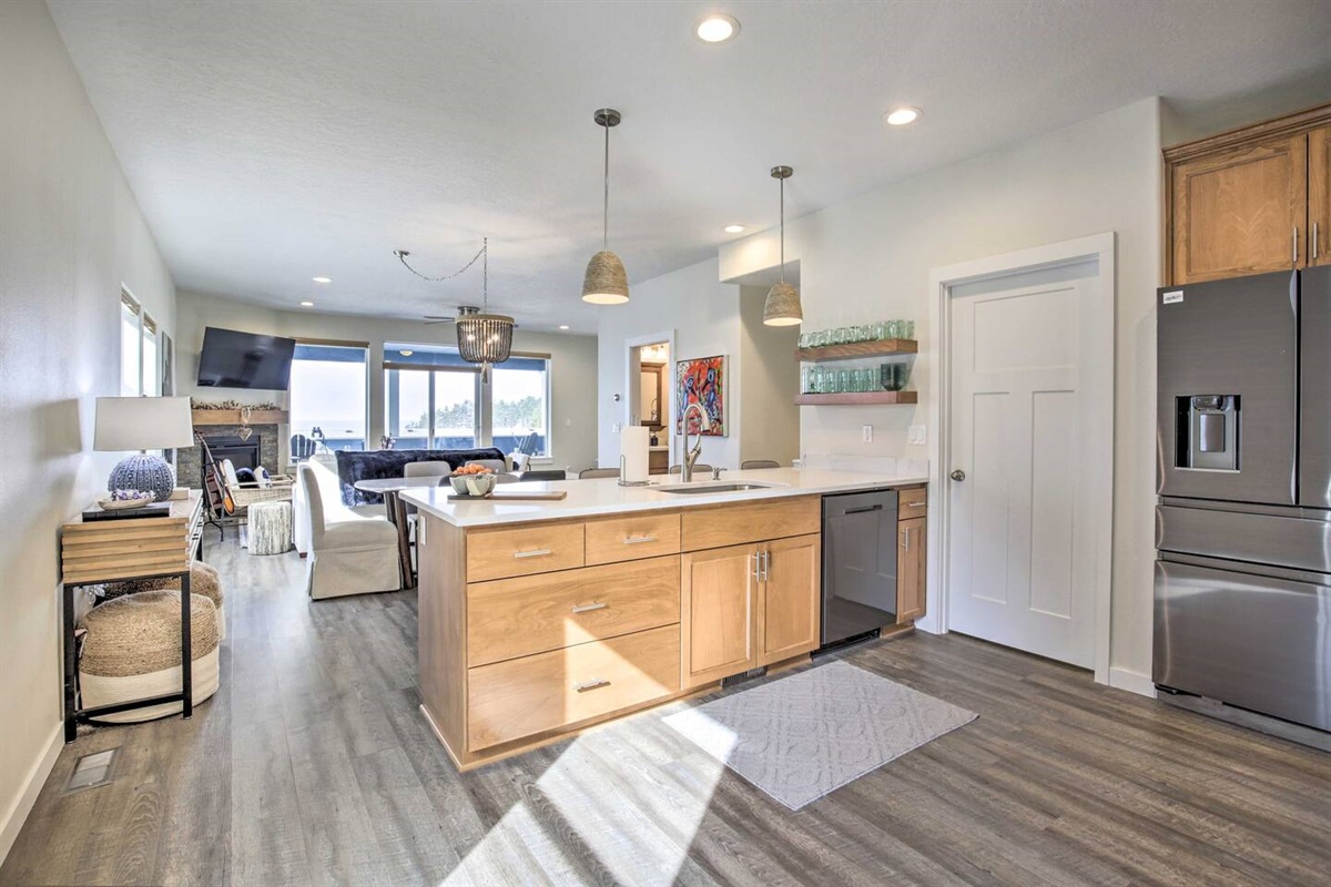 Loved our stay in Depoe Bay, the home feels like new construction and was very clean and larger than anticipated. The kitchen is spacious and has everything we needed for my dad’s birthday dinner. It’s a short drive or walk to the downtown area as well. You can see the waves crashing from the balcony or from the living room area. Overall we enjoyed ourselves and would recommend this place to others.