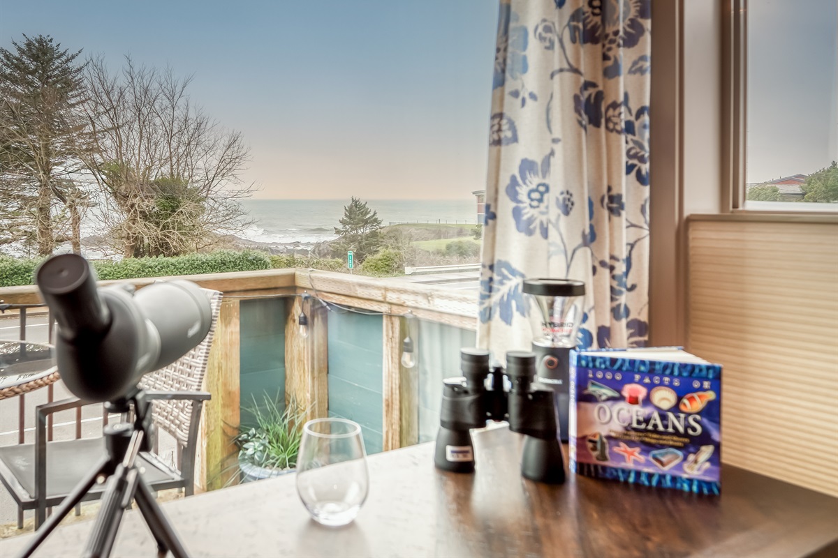Escape to serenity at Tranquility Cove, a charming and beautifully appointed 2-bedroom, 2-bathroom condo in Depoe Bay, Oregon. Perfectly located on the second floor, this luxurious vacation rental offers spectacular panoramic views of Pirate’s Cove, a stunning sandstone inlet nestled among 40-foot lava cliffs. Relax in the comfort of your spacious living area or step out onto the balcony to watch the surf crash against the rocks and seabirds soaring above the sunset sky.