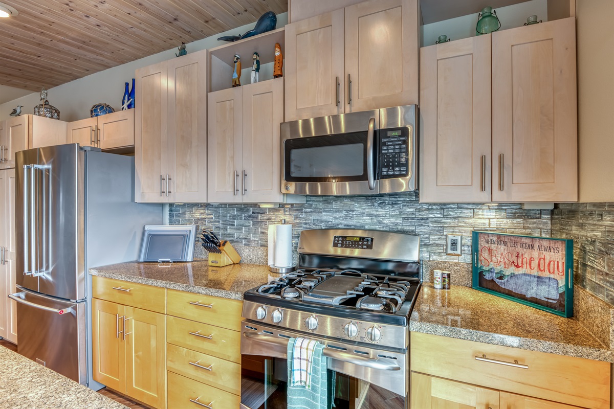 Fully Equipped Kitchen with Quartz Counters & Stainless-Steel Appliances