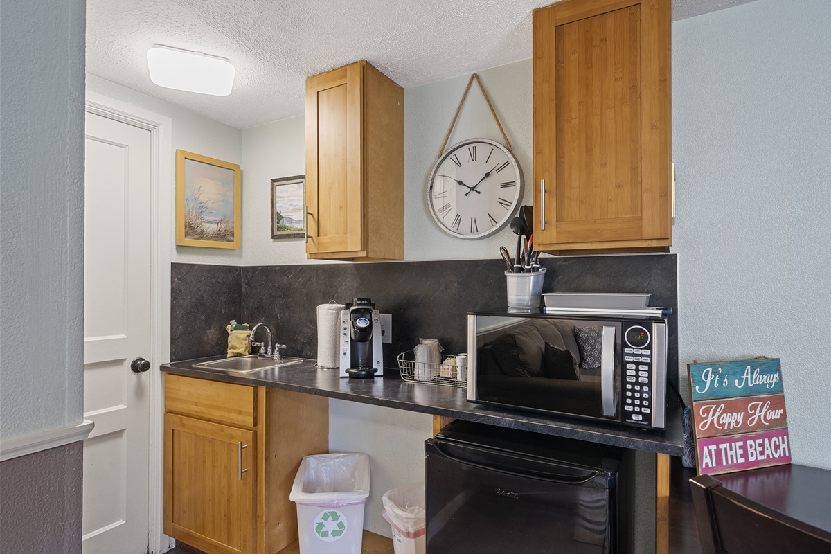 1 Bedroom • 1 Bathroom 1 Bath • Sleeps 2-4This is unit, the Longboard #7, is a home-like 1 bedroom property. It features a spacious living space, a kitchenette (no cooktop/oven) and 1 bedroom. The bedroom has a queen size bed. If you need to accommodate additional people the sofa is also a sleeper for 2 additional sleeping spaces. The unit will sleep 4 (please note the bedroom does not have a door).