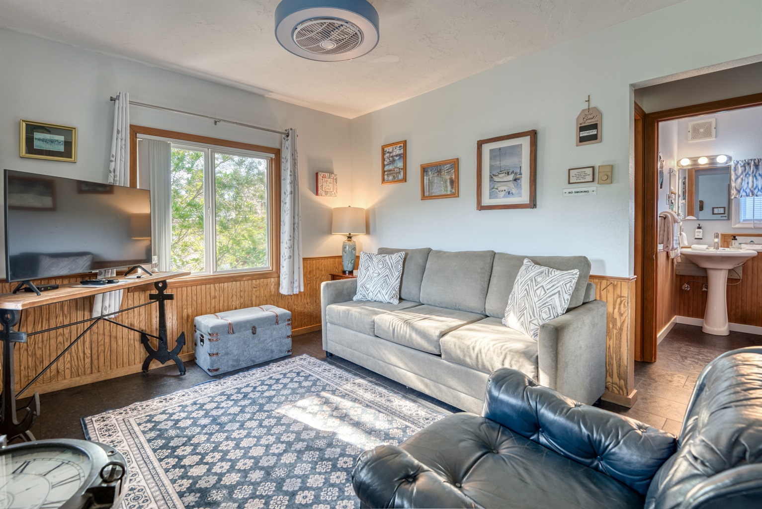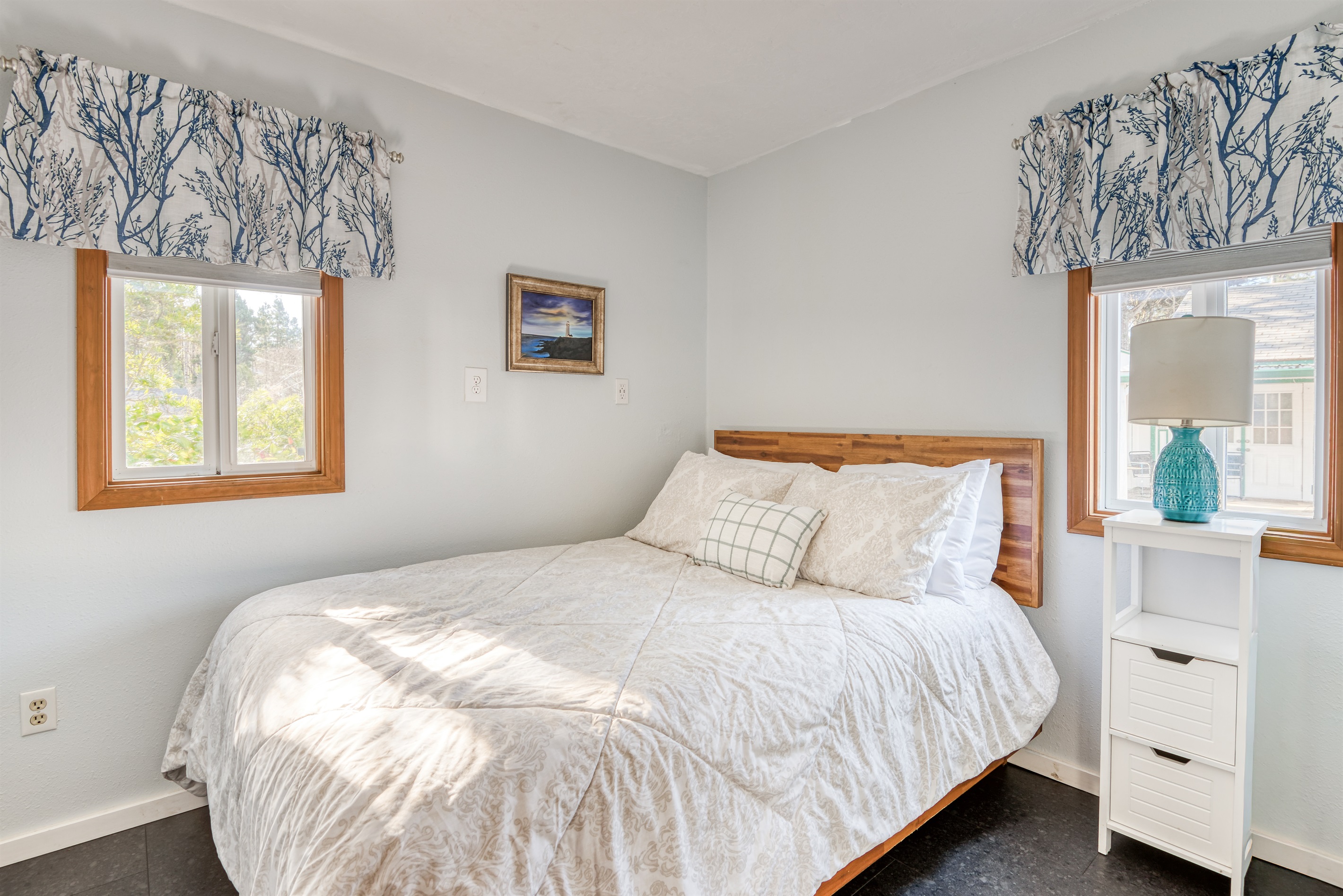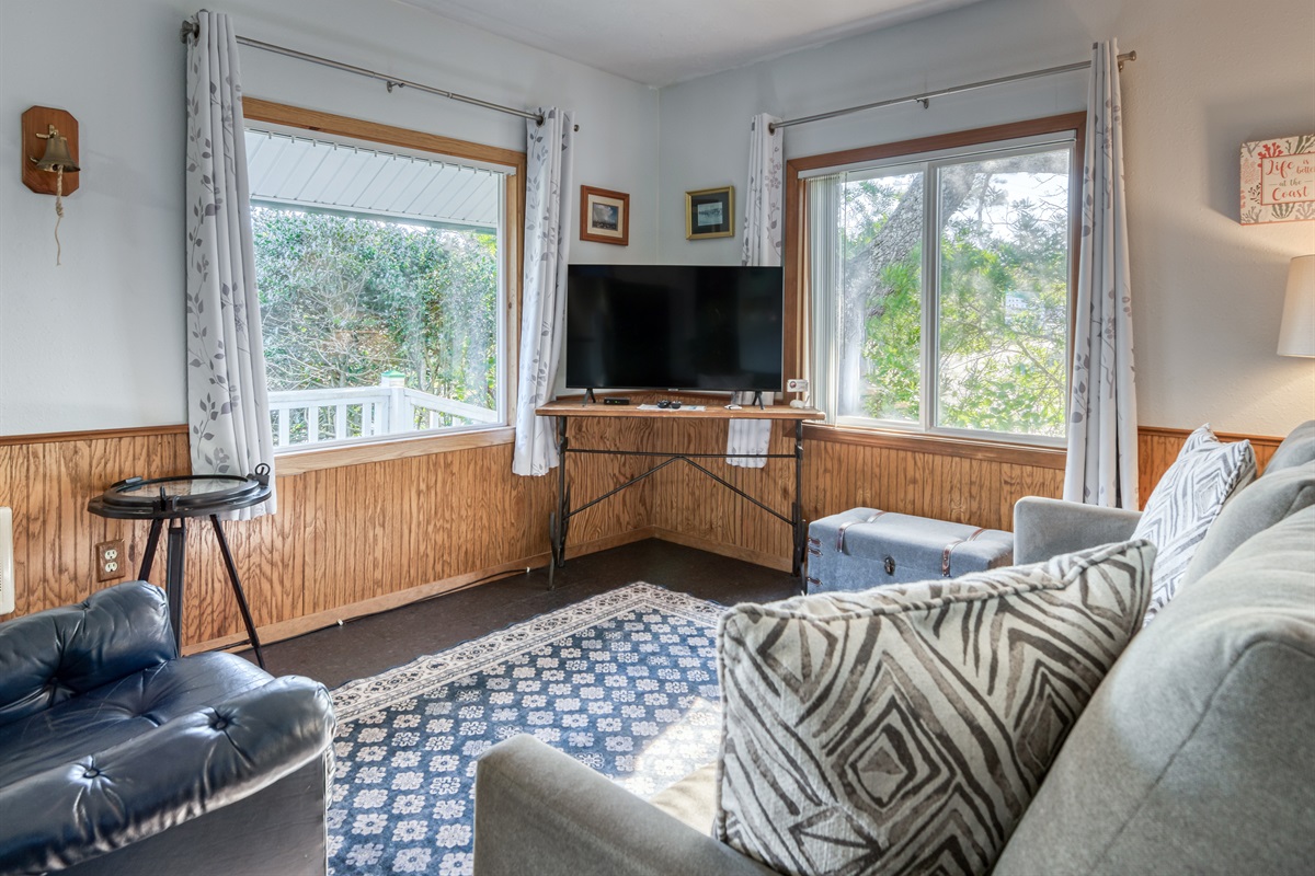 2 Bedrooms • 1 Bathroom 1 Bath • Sleeps 3-6Experience the quiet beauty of Depoe Bay at this condo-like vacation suite at Trollers Lodge! Here in a tranquil, private setting, you'll be treated to two bedrooms, a full kitchen where you can prepare homemade meals, and a flat screen TV with cable to welcome you home from your days spent whale watching, deep sea fishing and beachcombing.