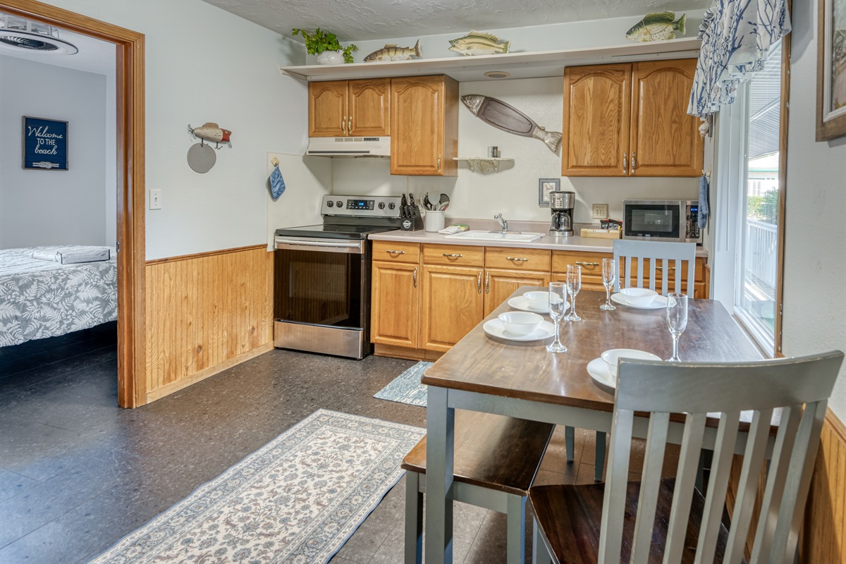 There are several picnic tables and benches throughout the property available for outdoor dining and nice relaxing rest in the cool coastal air!