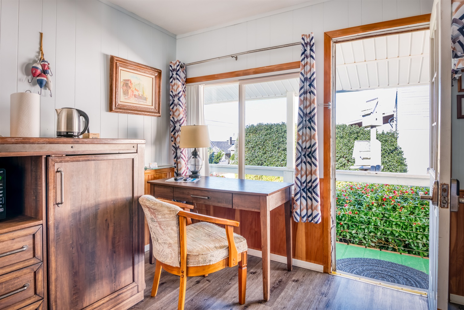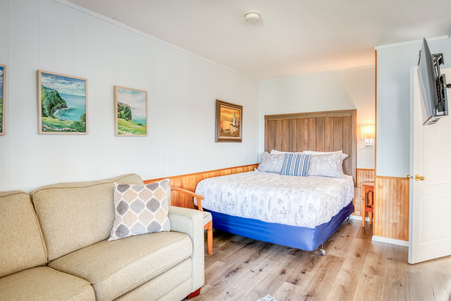 Studio • 1 Bathroom 1 Bath • Sleeps 2-4Experience the quiet beauty of Depoe Bay in this studio vacation suite at Troller's Lodge! Here in a tranquil, private setting, you'll be treated to a unit that features a queen size bed and full size sleeper sofa plus a small living area to relax. Your kitchenette (no cooktop/oven) will include a microwave, mini fridge, Coffee maker, and toaster, There is also a flat screen TV with cable to welcome you home from your day spent whale watching, deep sea fishing or beachcombing.